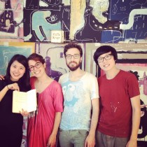 Visiting the studio of David with the RU residents. There are no cultural barriers or language limitations when there is a desire to get close. Christine Chan (Taiwan), Nuno da Luz (Portugal) and David Huang (Taiwan) – RU residents. Visitando